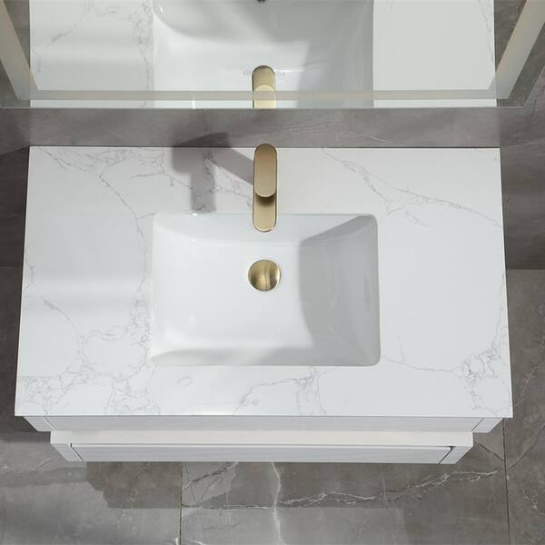 36 in. W x 21 in. D x 30 in. H Single Sink Wall-Mounted Bath Vanity in White with White Engineered Stone Composite Top