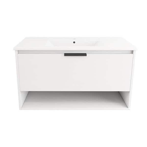 36 in. W x 22 in. D x 33.5 in. H Single Bath Vanity in Espresso with White Quartz Counter Top with White Basin