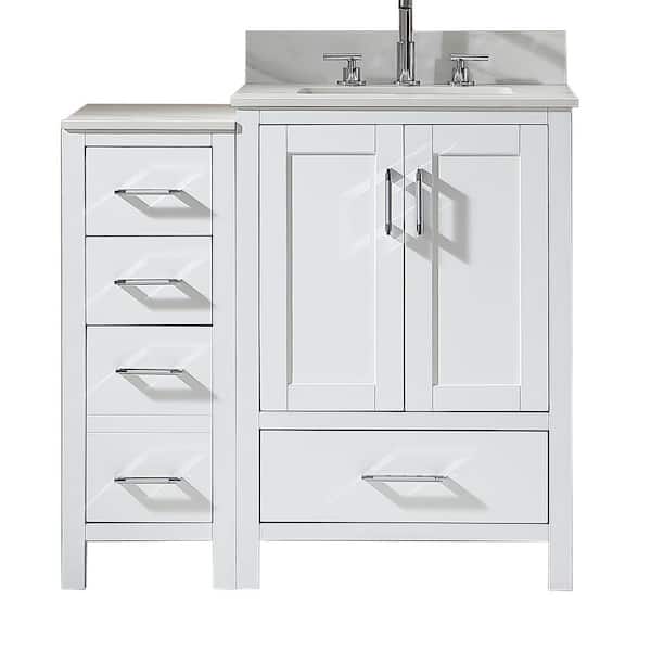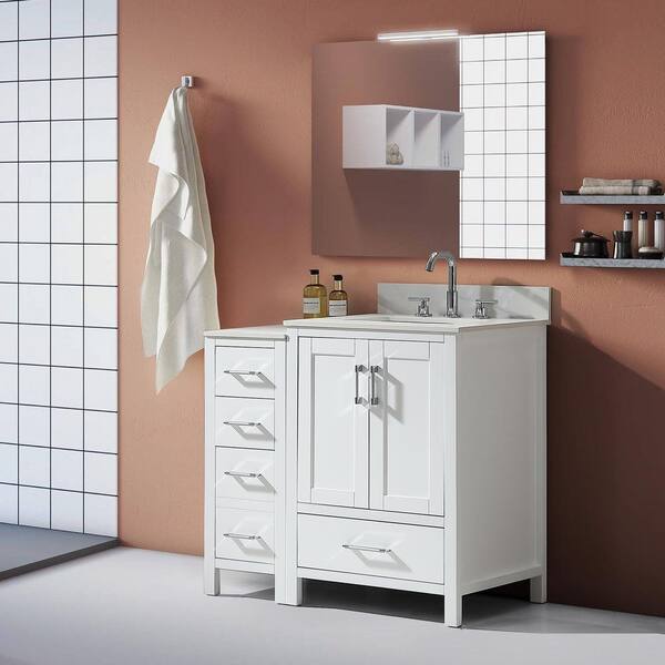 36 in. W x 22 in. D x 34 in. H Undermount Single Sink Freestanding Bath Vanity in White with White Engineer Top