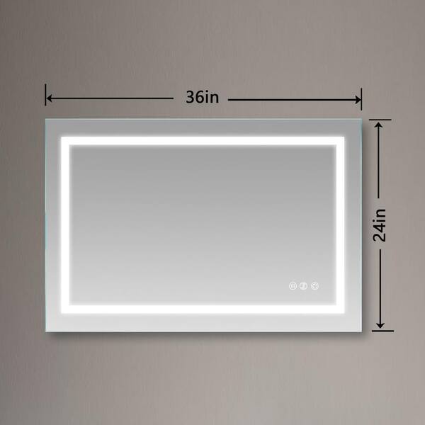 36 in. W x 24 in. H Rectangular Frameless LED Wall Mount Anti-Fog Dimmable Bathroom Vanity Mirror