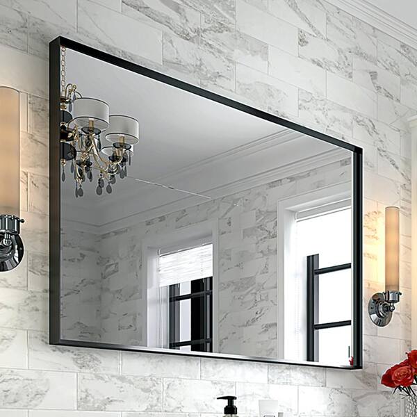 36 in. W x 24 in. H Rectangular Metal Framed Wall Mounted Bathroom Vanity Mirror in Black (Horizontal Vertical)