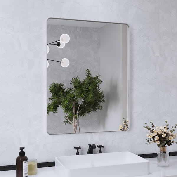 36 in. W x 28 in. H Large Rectangular Framed Wall Mounted Bathroom Vanity Mirror in Brushed Nickel