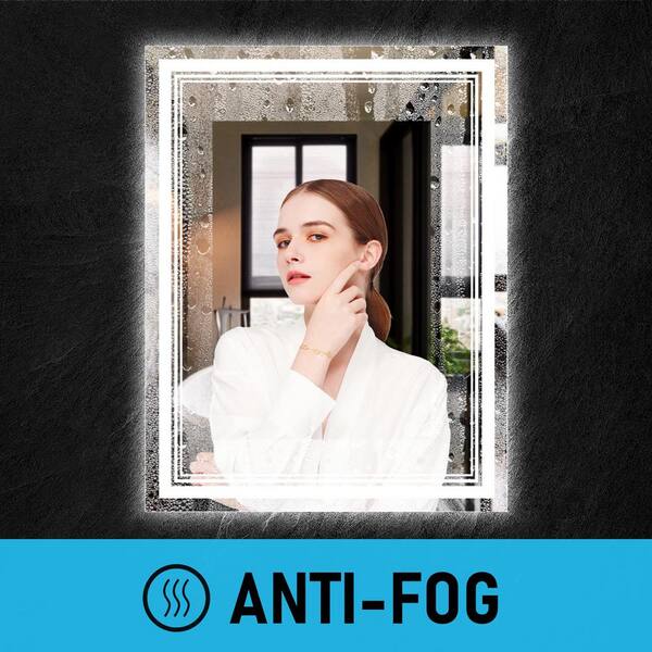 36 in. W x 28 in. H Large Rectangular Frameless Anti-Fog LED Wall Bathroom Vanity Mirror in Silver, Front Light