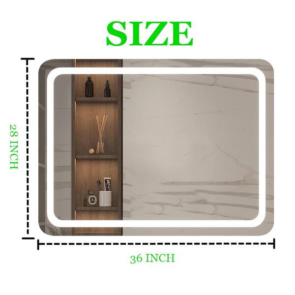 36 in. W x 28 in. H Large Rectangular Frameless Anti-Fog Wall Mounted Bathroom Vanity Mirror in Natural