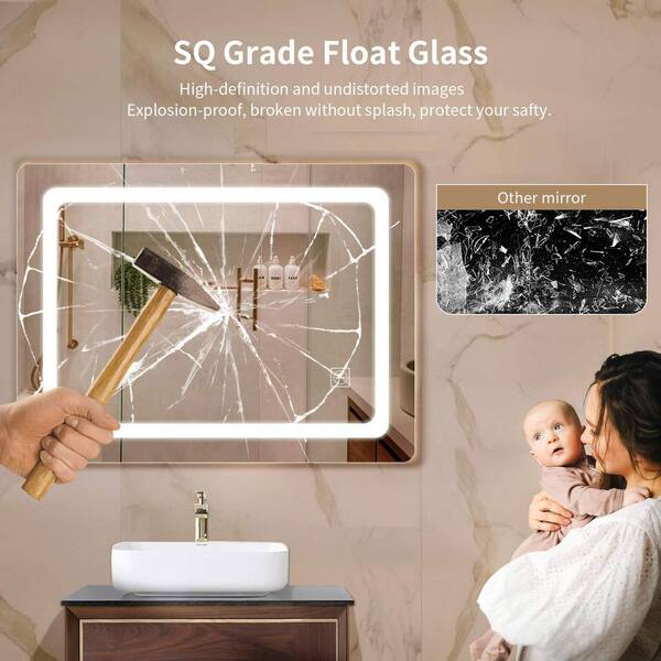 36 in. W x 28 in. H Large Rectangular Frameless Led 3 Color Temperature Wall-Mount Bathroom Vanity Mirror in Silver