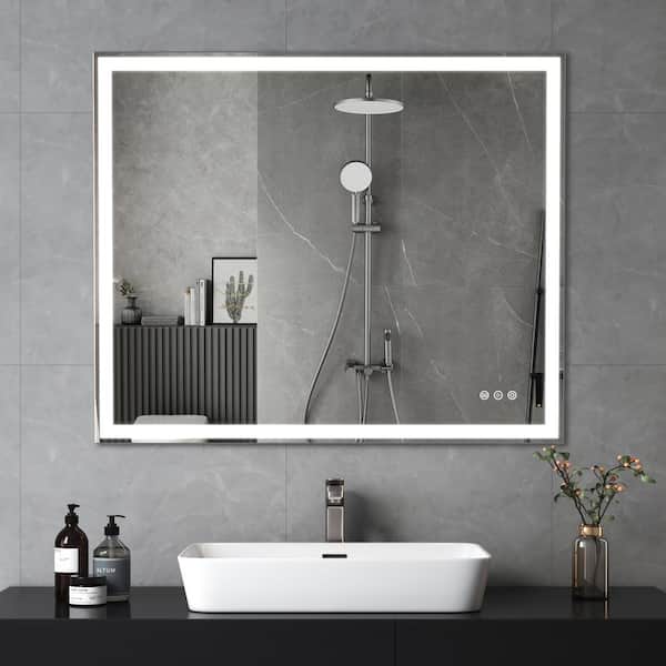 36 in. W x 30 in. H LED Rectangle Aluminium Frameless Silver Mirror with Memory for Living Room