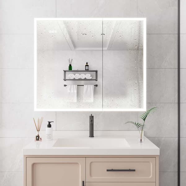 36 in. W x 30 in. H LED Rectangular Aluminum Medicine Cabinet with Mirror with Touch Switch