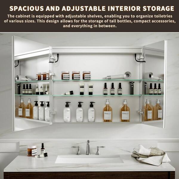 • 36 in. W x 30 in. H medicine cabinet with lighting and defogger