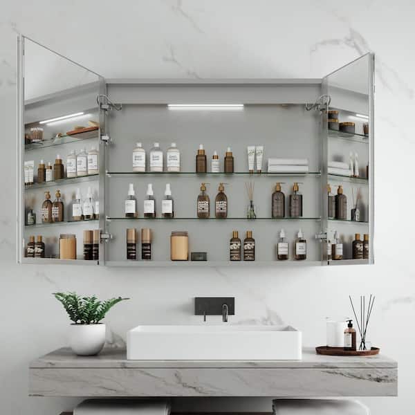 36 in. W x 30 in. H Rectangular Aluminum Medicine Cabinet with Mirror and Shelves