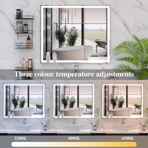 36 in. W x 30 in. H Rectangular Framed LED Anti-Fog Wall Bathroom Vanity Mirror in Silver