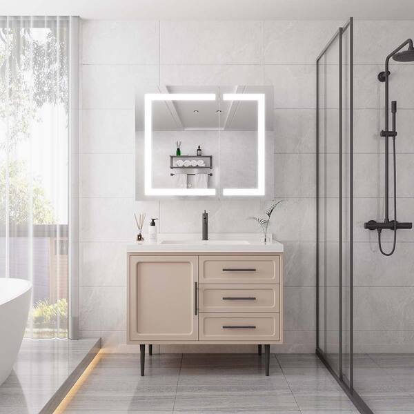 36 in. W x 30 in. H Rectangular Silver Lighted Anti-Fog Recessed/Surface Mount Medicine Cabinet with Mirror