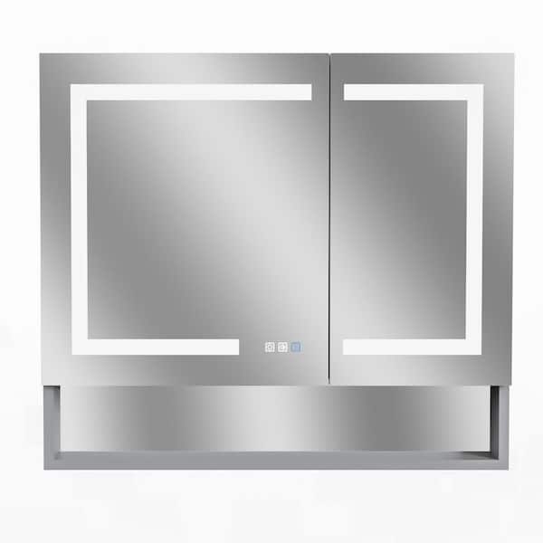 36 in. W x 32 in. H Rectangular Sliver Aluminum Medicine Cabinet with Mirror
