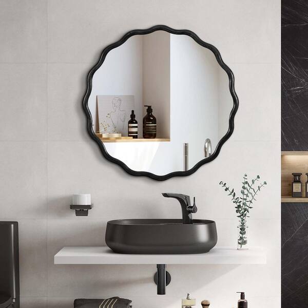 36 in. W x 36 in. H Black Modern Wavy Solid Wood Wall Mirror