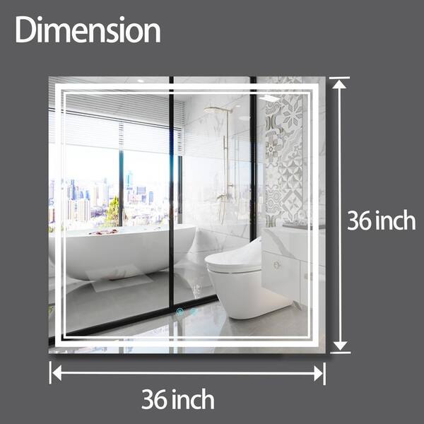 36 in. W x 36 in. H LED Square Frameless Anti-Fog 3 Color Touch Control Wall Mounted Bathroom Vanity Mirror in Natural