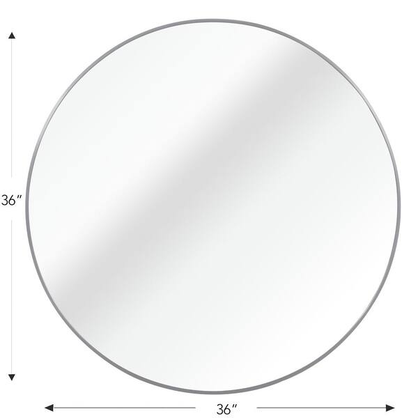 36 in. W x 36 in. H Round Silver Aluminum Framed Wall-Mounted Bathroom Vanity Mirror