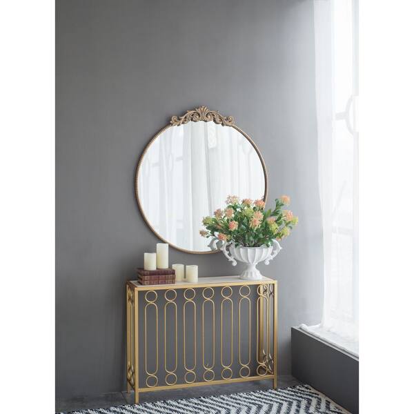 36 in. W x 39 in. H Round Hanging Metal Framed Wall Mounted Bathroom Vanity Mirror in Gold Classic Design Mirror