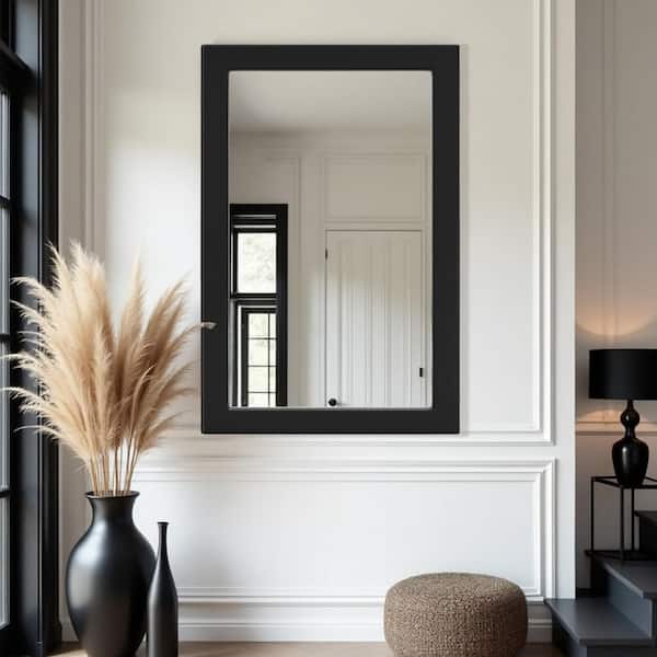 36 in. W x 54 in. H Classic Black Rectangular Wood Frame Bathroom Vanity Wall Mirror / Full Body Mirror