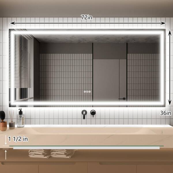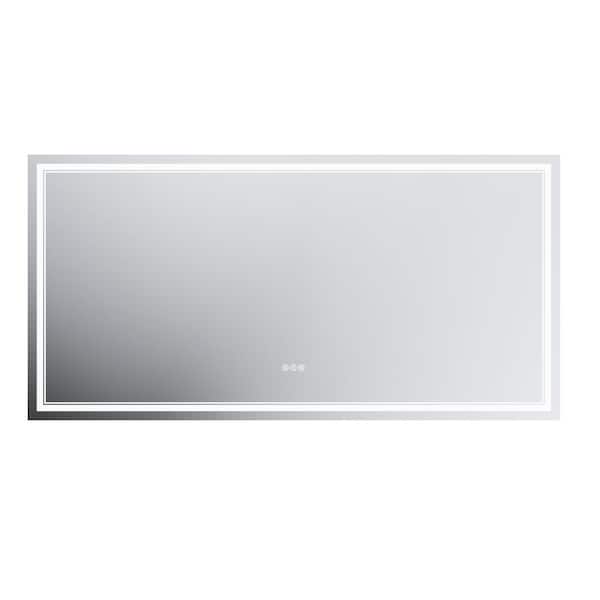 36 in. W x 72 in. H Rectangular Frameless LED Light Anti-Fog Wall Bathroom Vanity Mirror with Backlit and Front Light
