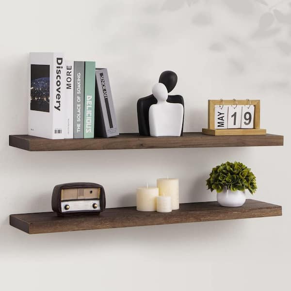 36 in. W x 8 in. D Walnut Floating Shelves Decorative Wall Shelf Rustic Solid Elm Wood (Set of 2)