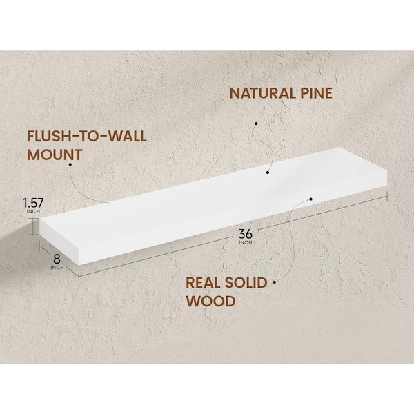 36 in. W x 8 in. D White Floating Shelves Decorative Wall Shelf (Set of 2)