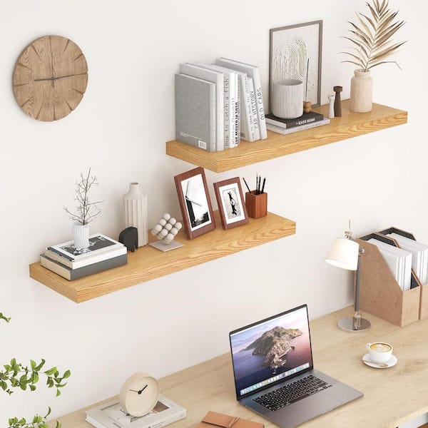 36 in. W x 9.3 in. D Oak Floating Shelves Decorative Wall Shelf Display Storage Shelves Set of 2