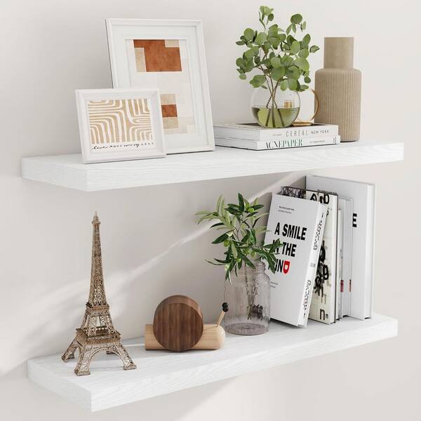 36 in. W x 9.3 in. D White Floating Shelves Decorative Wall Shelf Display Storage Shelves Set of 2