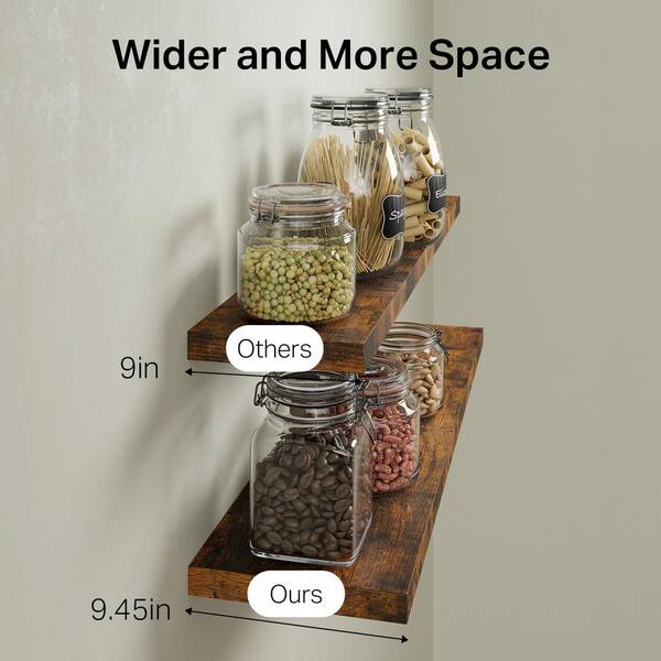 36 in. W x 9.45 in. D Rustic Brown Decorative Wall Shelf, Wall Mounted Rustic Wood Shelves (Set of 2)