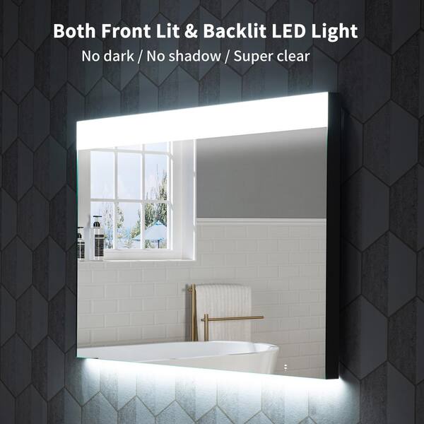 36.in W x24.in H Rectangle Framed Wall Mounted Bathroom Vanity Mirror with Led Lights Anti-Fog IR Sensor Control