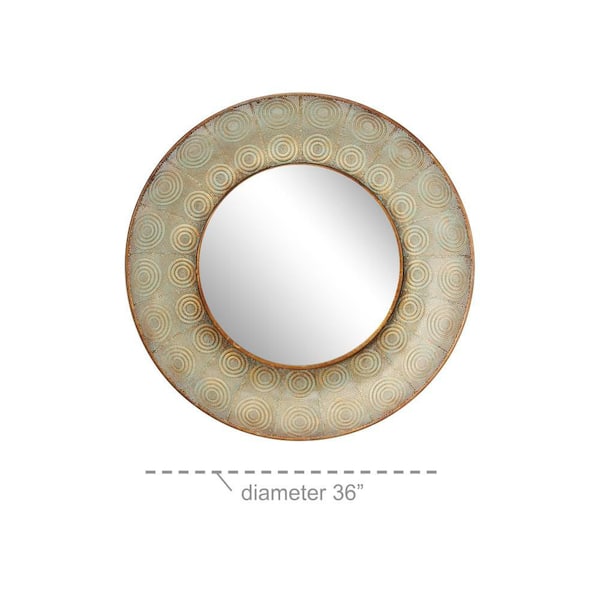 36 in. x 36 in. Pierced Gold Metal Round Framed Wall Mirror with Eclectic Circle Designs