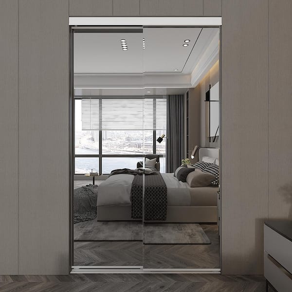 36 in. x 80.5 in. White Bevelled Mirror Sliding Closet Door