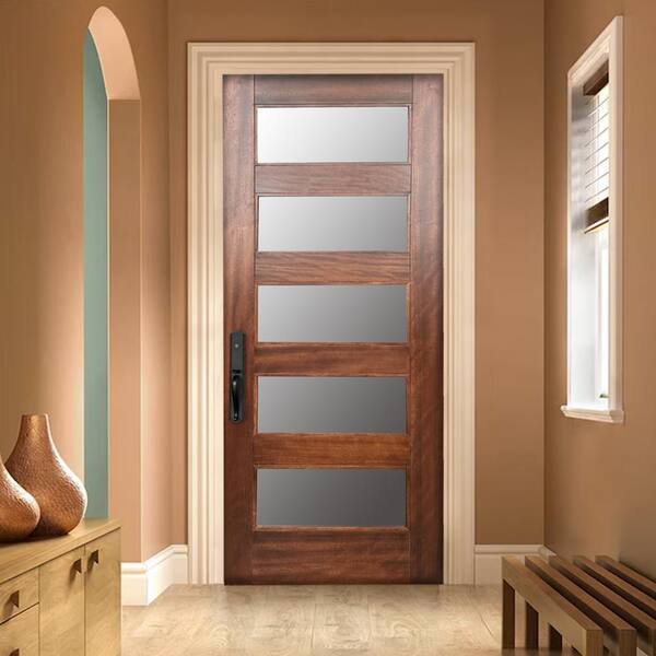 36 in. x 80 in. Deep Red-Brown Reversible Mahogany Patio Door Slab with Frosted Tempered Glass