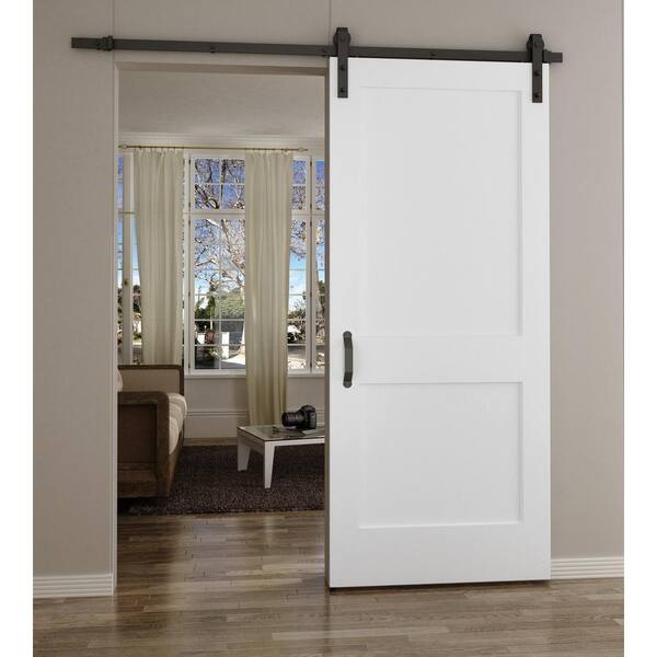 36 in. x 84 in. 2 Panel Shaker Primed Wood Sliding Barn Door with Hardware Kit