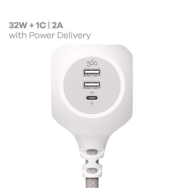 PowerBall 32W Braided 3-Outlet Charging Hub with 2 USB-A ports and 1 USB-C port