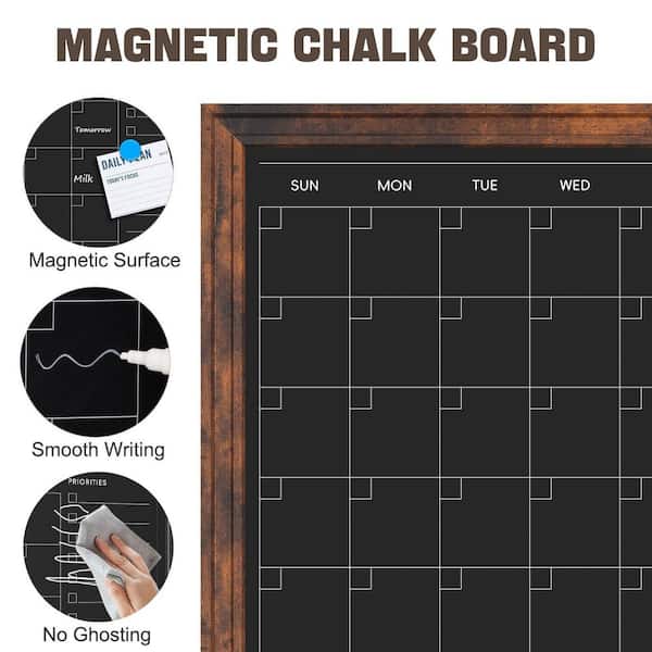 36x24 Inch Magnetic Chalkboard Calendar Wall Hanging Monthly Planner Rustic Brown Frame with 8 Magnets 1 Marker