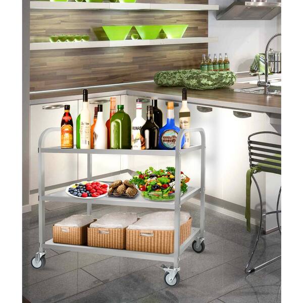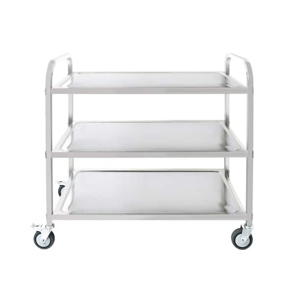37.2 in. x 19.3 in. 3-Shelf Sliver Outdoor Grill Cart Food Service Rolling Cart 360°Rotation Storage Cart with Wheels
