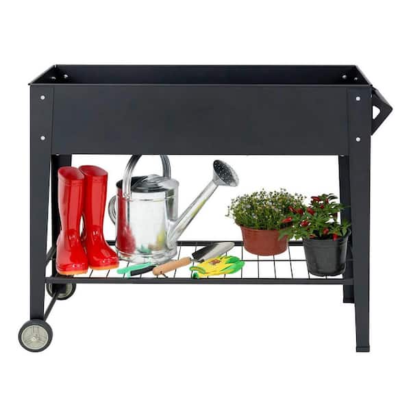 37.4 in. W x 14.6 in. D x 31.6 in. H Metall Garden Planter Box Outdoor Raised Beds with Legs Wheels