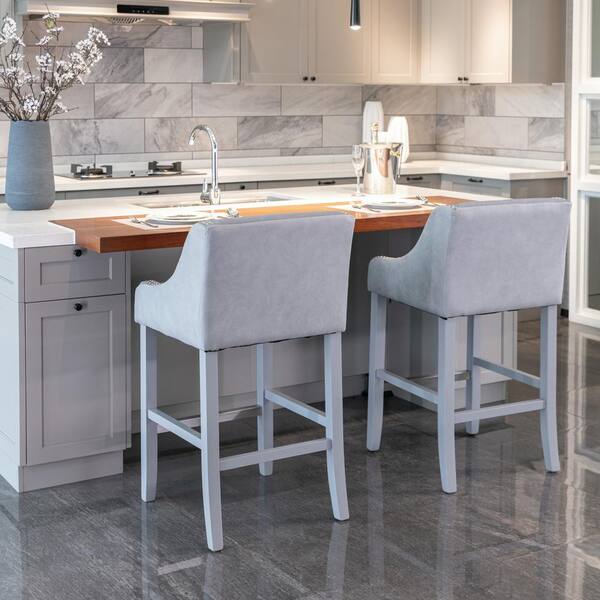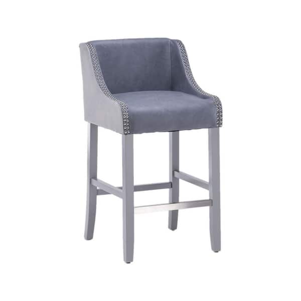 37.70 in. Blue Low Back Wood Frame 27.9 in. Bar Stool with Faux Leather seat (Set of 2)
