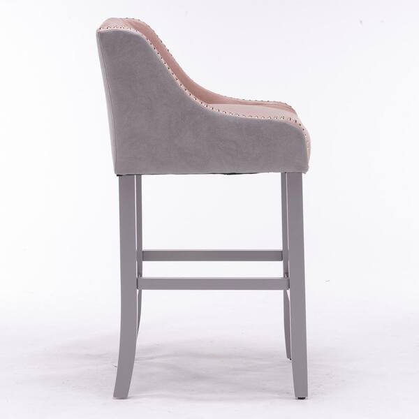 37.70 in. Pink Low Back Wood Frame 27.9 in. Bar Stool with Faux Leather Seat (Set of 2)
