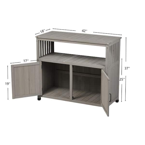 37 in. H Outdoor and Indoor Wood Rectangle Patio Bar Table with Storage, Buffet Cabinet Sideboard, for Deck Backyard