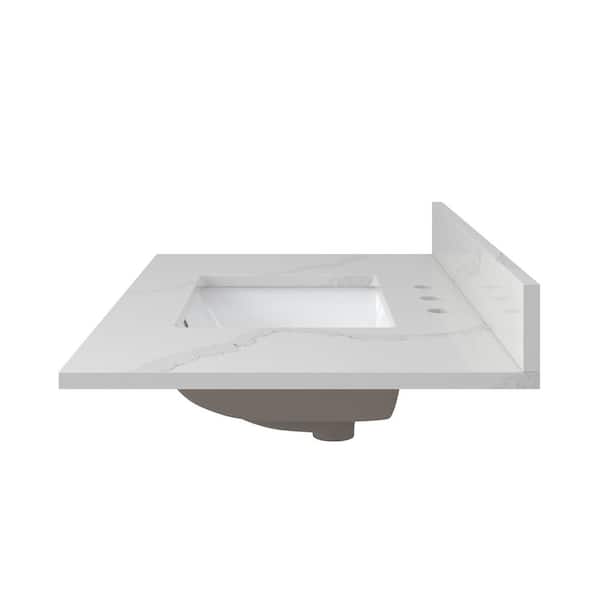 37 in. W x 22 in. D x .75 in. H Engineered Quartz White Rectangular Single Sink Bath Vanity Top in Calacatta Bianco