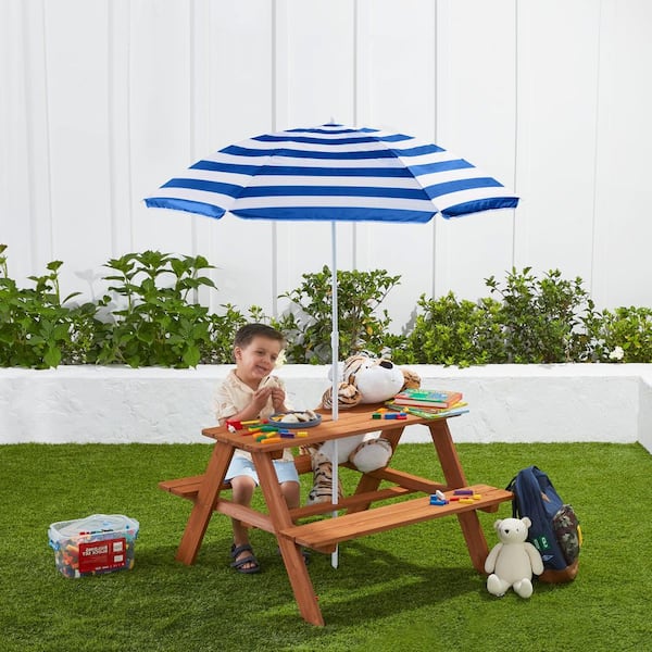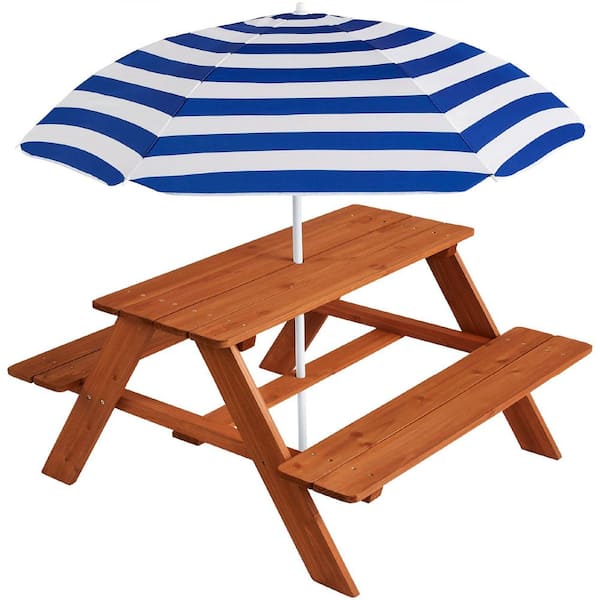 38 in. Brown Rectangle Wood Picnic Tables Seats 2 People with Umbrella Hole and Umbrella