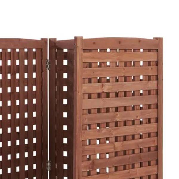 38 in. Cedar Privacy Screen Freestanding Outdoor Air Conditioner Garden Fence with Slatted Design, Brown (3-Panel)
