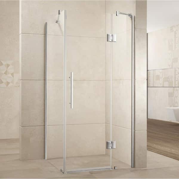 38 in. W x 76 in. H Frameless Pivot Shower Door/Enclosure in Brushed Nickel with Handle, Right Side