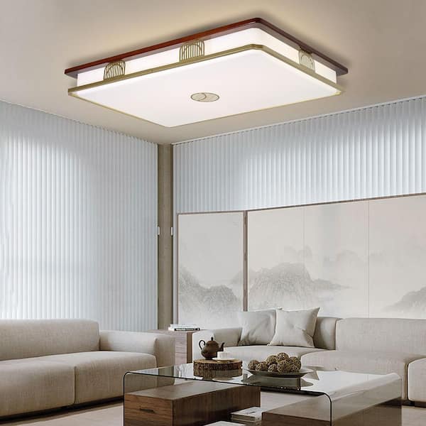 38 in. White New Chinese Style Rectangular Dimmable Integrated LED Flush Mount Ceiling Light with Remote