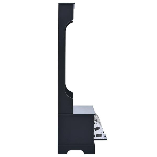 39.3 in. W x 17.7 in. D x 70.8 in. H Black Wood Linen Cabinet with 3 Open Shelves, 2 Flip Drawers and 4 Hooks