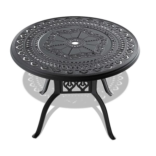 39.37 in. Cast Aluminum Outdoor Dining Table Weather-Resistant Round Patio Bistro Dining Table with Umbrella Hole