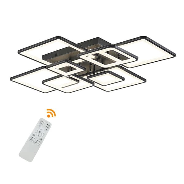 39.4 in. Modern Black Square Flush Mount Dimmable Integrated LED Ceiling Light with Remote, for Living Room, Bedroom