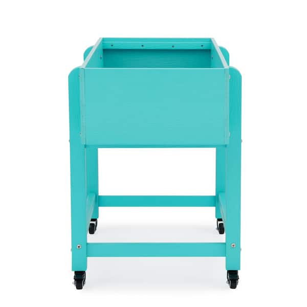 39.4 in. x 16.7 in. x 28 in. Aruba Blue Plastic Mobile Elevated Garden Beds with Lockable Wheels, Liner