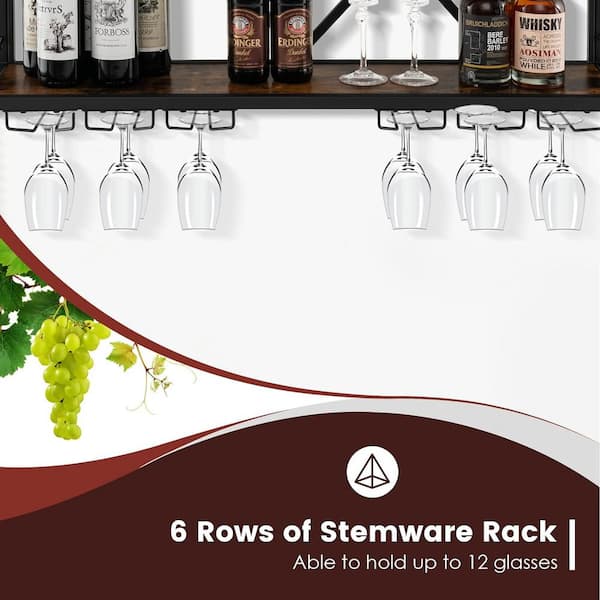 39-Bottle Black Wall Mounted Wine Rack with 12 Glasses Holders