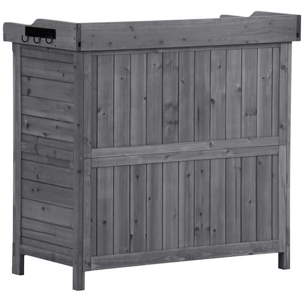 39 in. W x 19 in. D x 37.4 in. H Grey Fir Wood Outdoor Storage Cabinet with Galvanized Tabletop and Side Hook